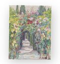 スペイン、グラナダ のアルハンブラ宮殿の庭園です。春になると明るい日差しと美しい花や緑に彩られます。春らしいやわらかな色彩の作品です。