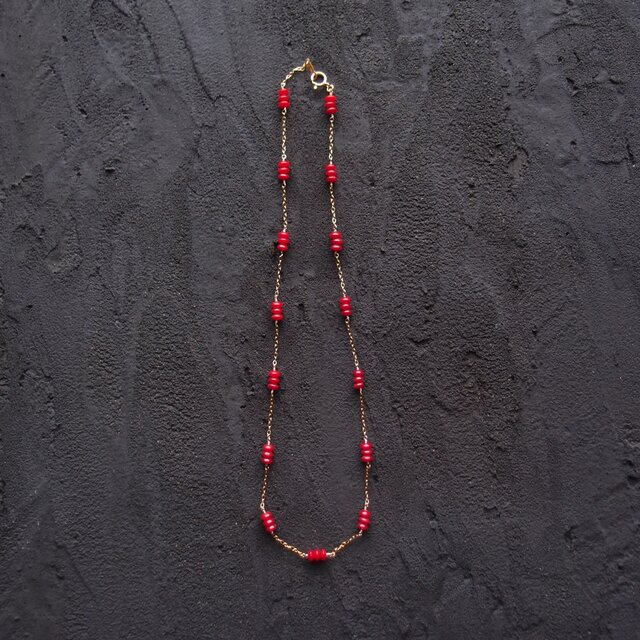 【K14gf】Red Coral Station Necklace/レッドコーラル ステーションネックレス(Rondelle)