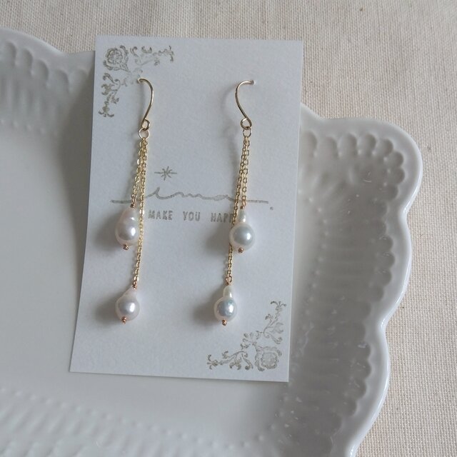 14kgf 淡水しずくパールのチェーンピアス