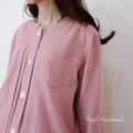 小さなスタンド襟(チビ襟)でスッキリとした首元に仕上げました。