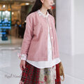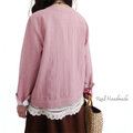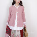 スモーキーピンクハーフリネンとアンティークローズのチビ襟ピンタックジャケット │お花見 ドライブ お出かけ コットン 旅行