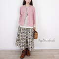 [Coordinate] コットンチョコと「ネイビーブルー&深紅のバラ」ゴブランの見せかけスカート