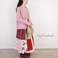 [Coordinate] リネンパッチティアードスカート☆ポピー・レッド