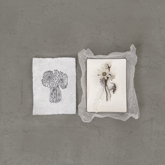 素敵なコサージュが届きました 小さなスワッグみたいでかわいく、いろいろな素材が使われていて眺めているだけで幸せな気持ちになります ありがとうございました