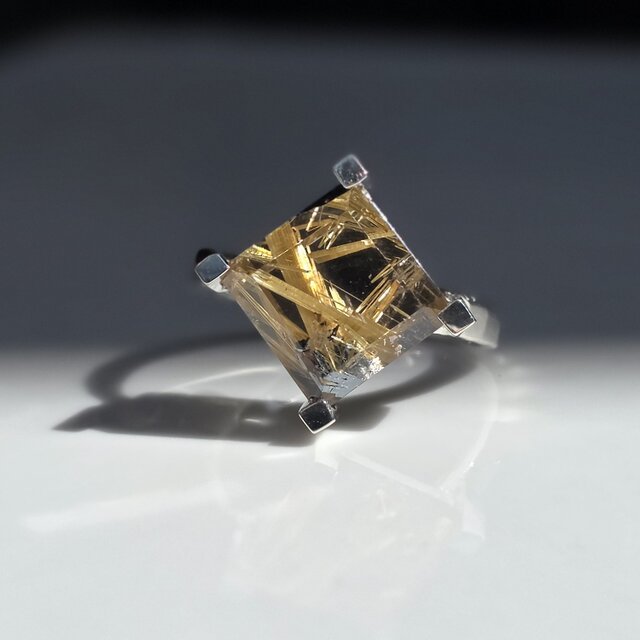 ルチルクォーツwithヘマタイト スクエアプレート アートな鉱物 シルバーSV925リング