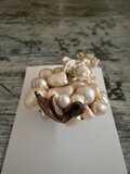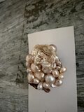 ごつごつブローチ淡水パールをレースや革で、おめかししてみました。