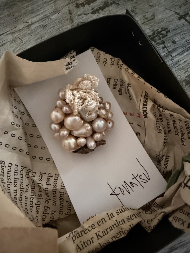 オーダーしました。私の抽象的な注文にもとても快く応対して下った結果、素晴らしいブローチが届きました。作り手の優しい心と素晴らしいセンスが合体した作品を大切に身に着け続けるつもりです。ありがとうございました。