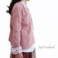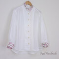 桜の花を思わせる美しい刺繍コットンを襟とカフスにあしらって