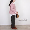 [Coordinate] スモーキーピンクハーフリネンとアンティークローズのチビ襟ピンタックジャケット