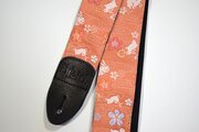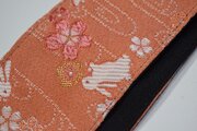 うさぎと桜 帆布ギターストラップ(サーモンピンク)京都金襴