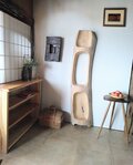 壁掛けタイプになっておりシェルフとして小物やお花をディスプレイして頂いたり、大胆な彫りの独創的デザインはオブジェのような作品でもあり空間のアクセントとして楽しめます。