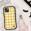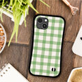 マーカーで書いたようなゆるゆるとしたラインがかわいいチェックのiPhoneケース。