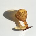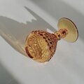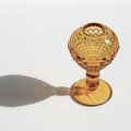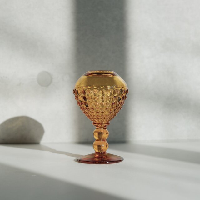 1950年代から60年代にかけてのアメリカのミッドセンチュリー期に人気を博したViking Glass(バイキング・グラス)社製のヴィンテージベース。あたたかみのあるアンバーカラーに、丸みを帯びたフォルム、ぽってりとした安定感のあるステム。時代を感じさせる豊かな色味と遊び心のあるデザインは、ヴィンテージならではの魅力です。高さ約