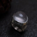 大きい石を月甲丸のリングにセットした定番の形ですが、