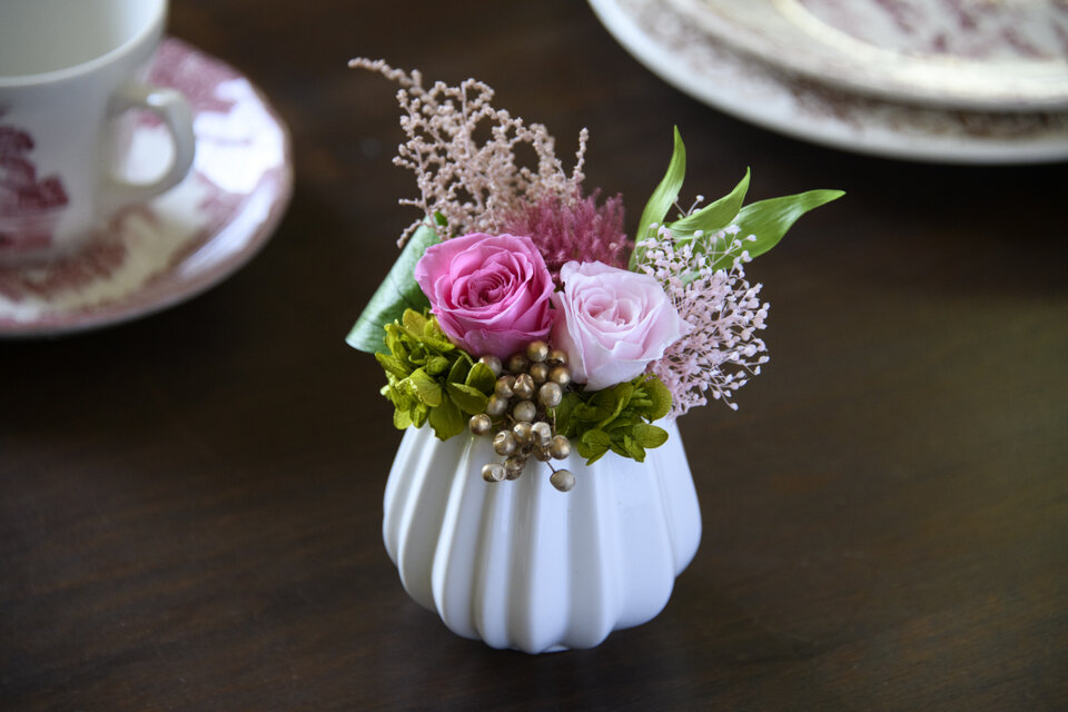 プリザーブドフラワー ピンク 花 アレンジメント ミニ プレゼント 女性 バラ 誕生日 ギフト 花 おしゃれ フェミニン 枯れない お花 お祝い 御礼 お礼 ご挨拶 退職祝い 送別会 ホワイトデー 母の日 結婚祝い 結婚記念日 開店祝い 成約記念 百寿 古希 喜寿 還暦 傘寿 米寿 ブリザードフラワー 陶器 仏花 お悔やみ お供え