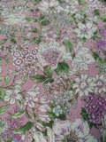 ◆色は落ち着いたピンクの地に多様の花柄プリントです