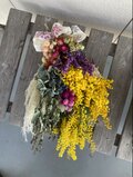 ドライユーカリとポンポンミモザを束ねました。