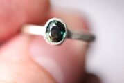 非加熱サファイアがまず珍しい上に、これは0.6~0.7Ctあってまあまあ粒が大きい。しかも緑と黄色のバイカラーね(写真2枚目、4枚目)。