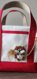 『絶対に歩かないよ!』拒否柴ちゃんのビーズブローチ付きミニトートバッグ