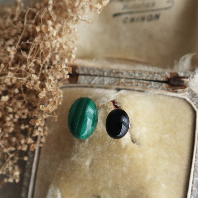 [マラカイト]1粒サイズ・・・約14×10mm [オニキス]約10×8mm