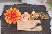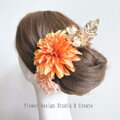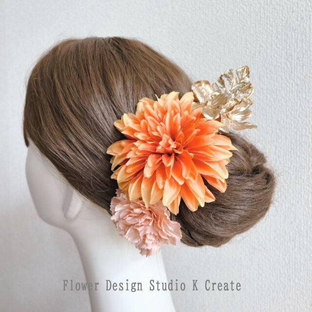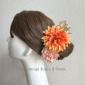 オレンジのダリアとピンクの紫陽花の髪飾り フラメンコ ダンス フォーマル 結婚式 袴