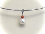 ペンダント素材:あこや真珠7.5㎜、サンゴ、SV、40㎝メッキチェーン付き