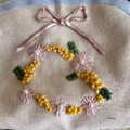 上質な国産帆布にミモザとパステルピンクのお花を手刺繍しました。