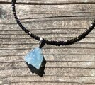 sv925☆Rough Aquamarine ラフロック アクアマリンのブラックスピネルネックレス