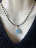 ブラックスピネルのクールな輝きと重なり合い、海の神秘をそのままネックレスにしたような存在感です。