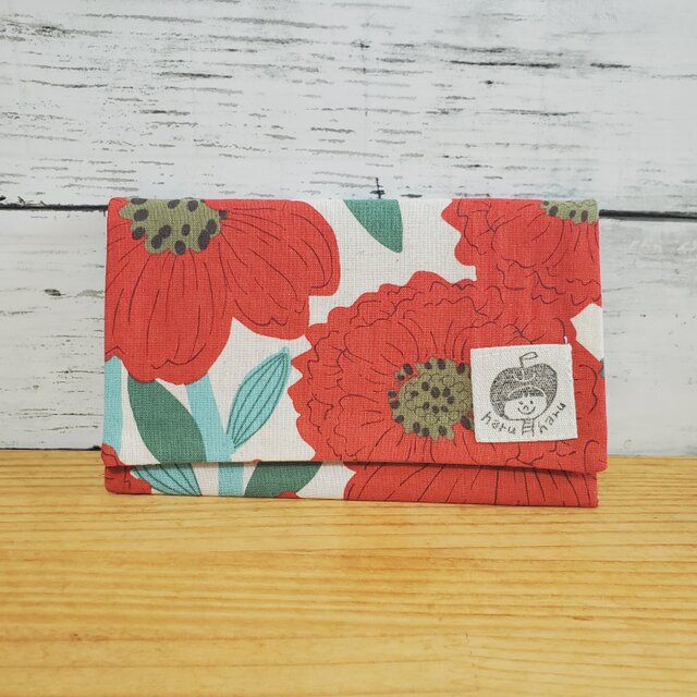 ぴったりが嬉しい!スリム通帳ケース 赤いお花