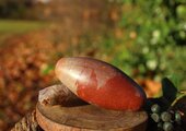 破壊と創造の二極性を持つ石。ベージュと赤茶色の模様が美しい、存在感のあるシバリンガムです。