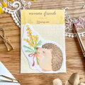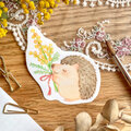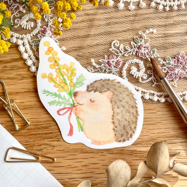ミモザ ステッカー イラストステッカー 動物イラスト ハリネズミ はりねずみ hedgehog 春 mimosa friends 手描きイラスト スマホステッカー 手帳デコ プレゼント かわいい 花 春雑貨 コラージュ シール