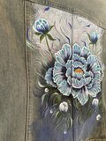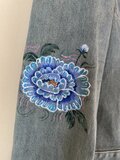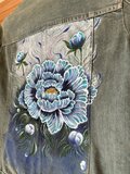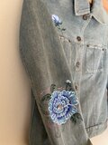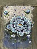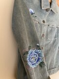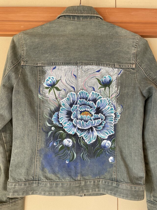 ef_deのアンティークなデニムジャケットに青い牡丹の花を描きました。