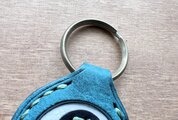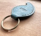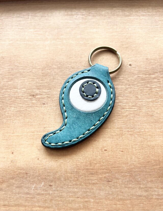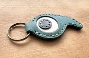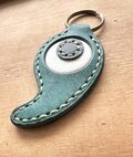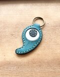 沖縄県のマークと勾玉をミックスした本革キーホルダーです。