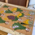 樹脂顔料の鮮やかな色を使って染めました。デザインも少しリデザインしてます。