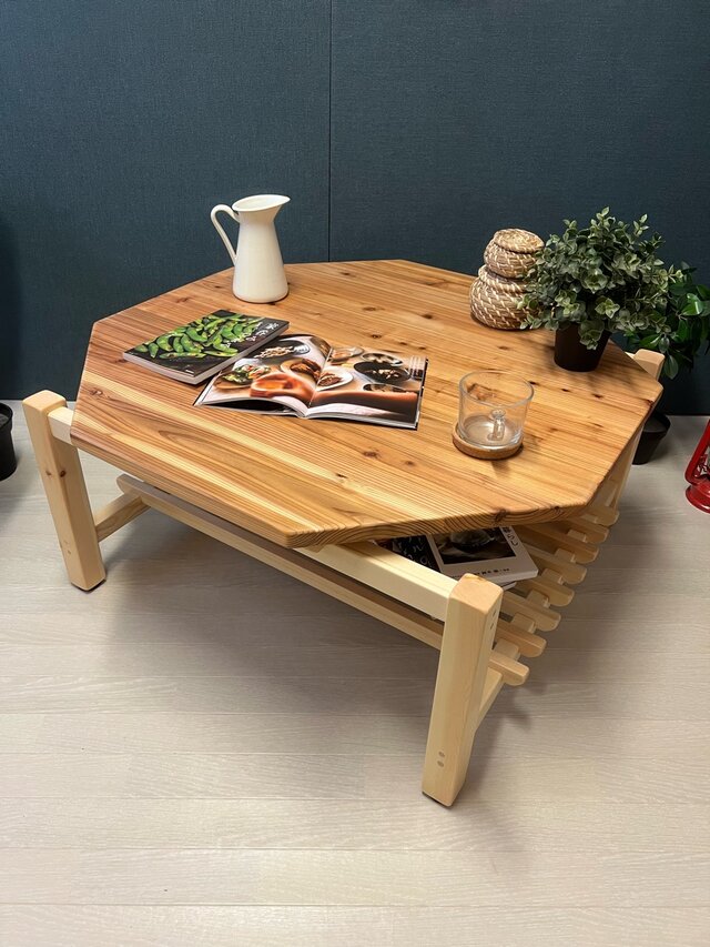 ◎荒々しい木目が美しい、杉材を天板に使用したローテーブルです。
