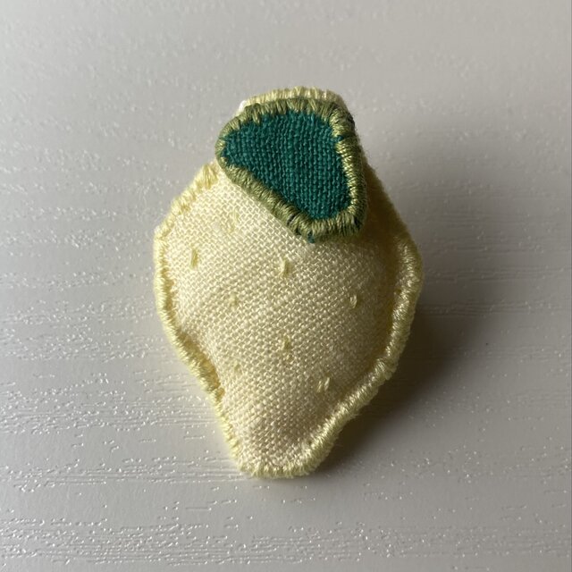 リネン生地でつくった、レモンのブローチです。