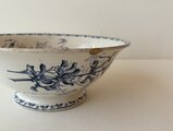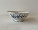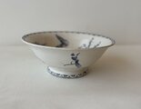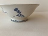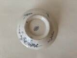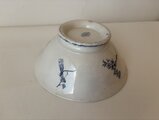 縁に一箇所チップが見られましたが、真鍮粉を用いた金継ぎにより丁寧にお直しされています。やわらかなブルーの器に金のラインがさりげないアクセントとなり、アンティークならではの味わいとして美しく引き立っています。