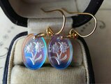 1970年代Germanヴィンテージ、可憐なエーデルワイズモチーフの美しいGlassペンダントを用いてお作りしました14Kgfピアス、またはイヤリングです。。