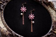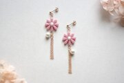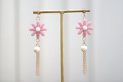 レジンアート お花とコットンパールとフリンジのピアス〈祝福されしもの〉