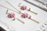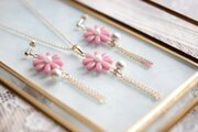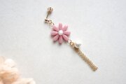 こっくりしたピンクのお花に、コットンパール一粒とフリンジを添えました。
