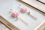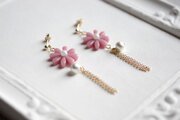 レジンでお花とコットンパールとフリンジのピアスを作りました♪