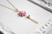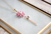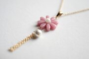 中心の花芯とコットンパールの光沢のある輝きが上品なペンダント。