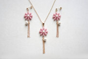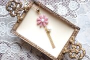 こっくりしたピンクのお花に、コットンパール一粒とフリンジを添えました。