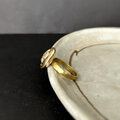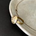 ボタンのクラシックな雰囲気と調和して身に着けるほど表情が育つリングです