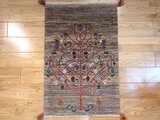 落ち着いたグレーの地色に、パッと花が咲いたようなザクロの木。一つひとつの実が異なる色・文様で丁寧に織り込まれており、まるで宝石箱を覗いているようなときめきを与えてくれます。イランではザクロは「子宝・子孫繁栄」の象徴。家族の幸せを見守るお守りのような存在感があります。