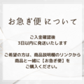 ※3日以内など、極端にお急ぎの場合も可能な限り対応いたします。ご購入前にコメントにてご相談ください。