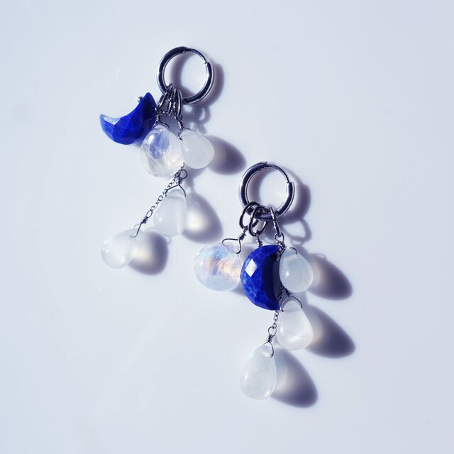 月の雫★ラピスラズリの月とムーンストーンの付け替え自由ピアス・サージカルステンレス・イヤリング可 ~月の雫
