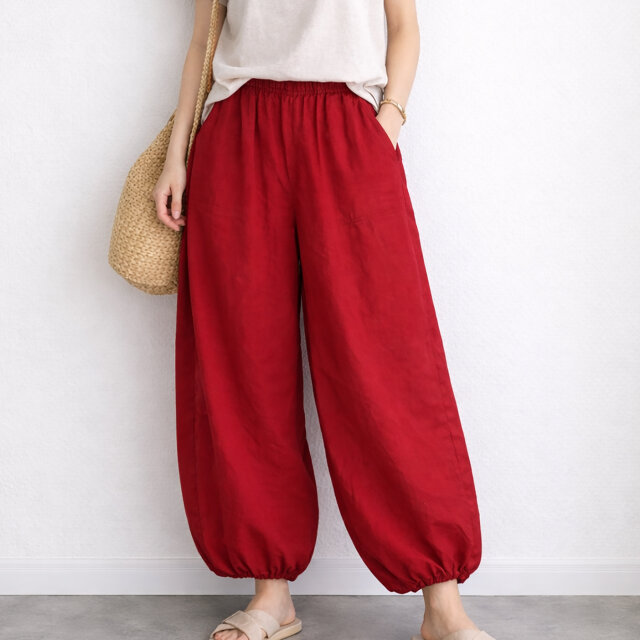コットンパンツ カスタマイズ可【赤】デリケート肌仕様 受注制作