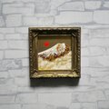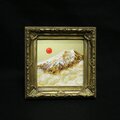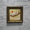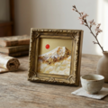 風水において、金色や富士山、旭日の組み合わせは「富と繁栄」や「金運アップ」を象徴する極めて縁起の良いモチーフです。豪華なアンティーク調のゴールド額縁が作品の格調をさらに高めており、手のひらサイズながら、空間全体のエネルギーを明るく変えてくれるような力強い存在感があります。